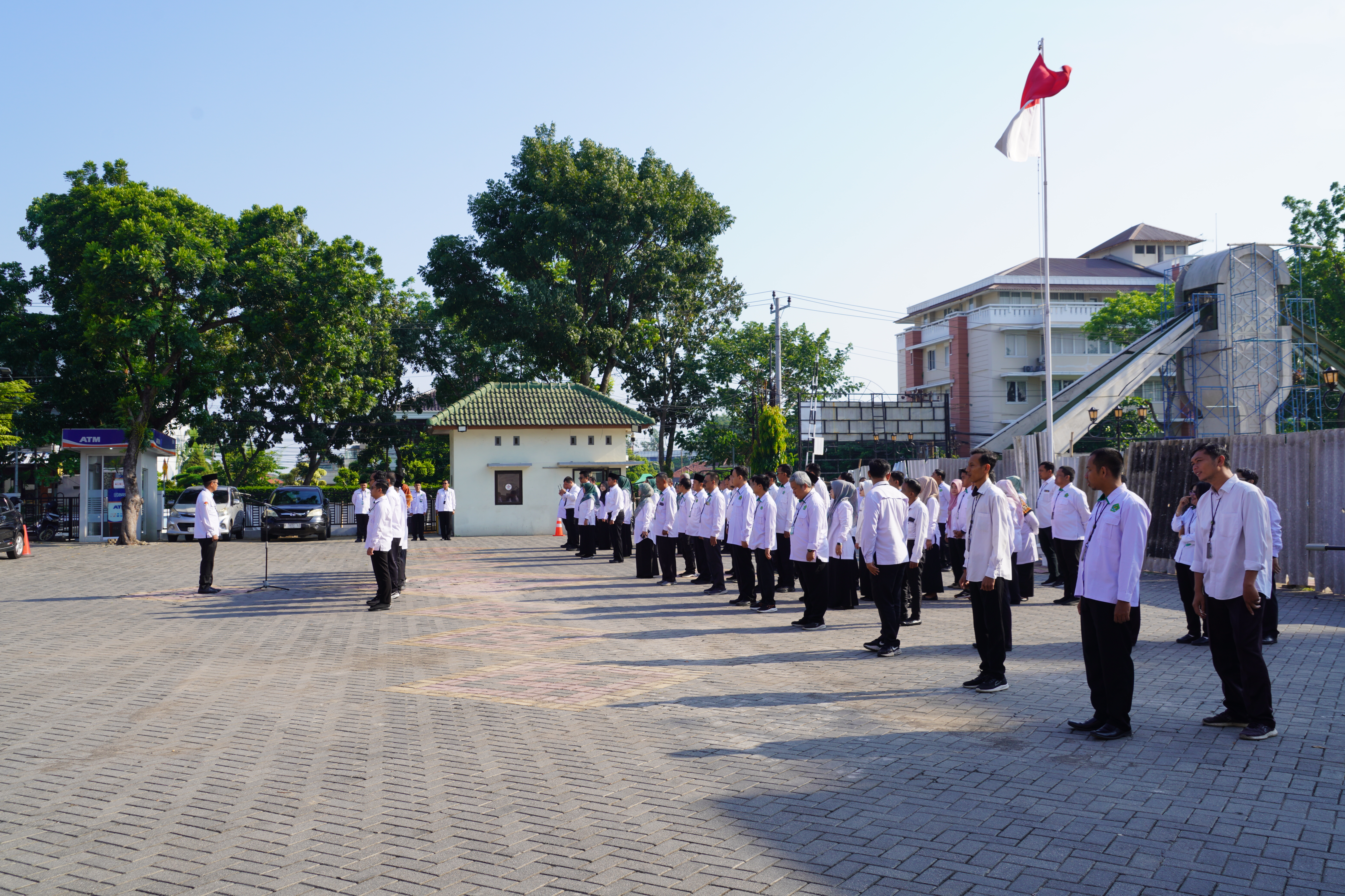 Semarang (Humas) – Kantor Wilayah Kementerian Agama Provinsi Jawa Tengah menggelar apel pagi rutin pada Senin (6/10/2025). Apel yang berlangsung di halaman kantor ini dipimpin oleh Karbono, Pembimbing Masyarakat Buddha Kanwil Kemenag Jateng, dan diikuti oleh seluruh pejabat serta pegawai.