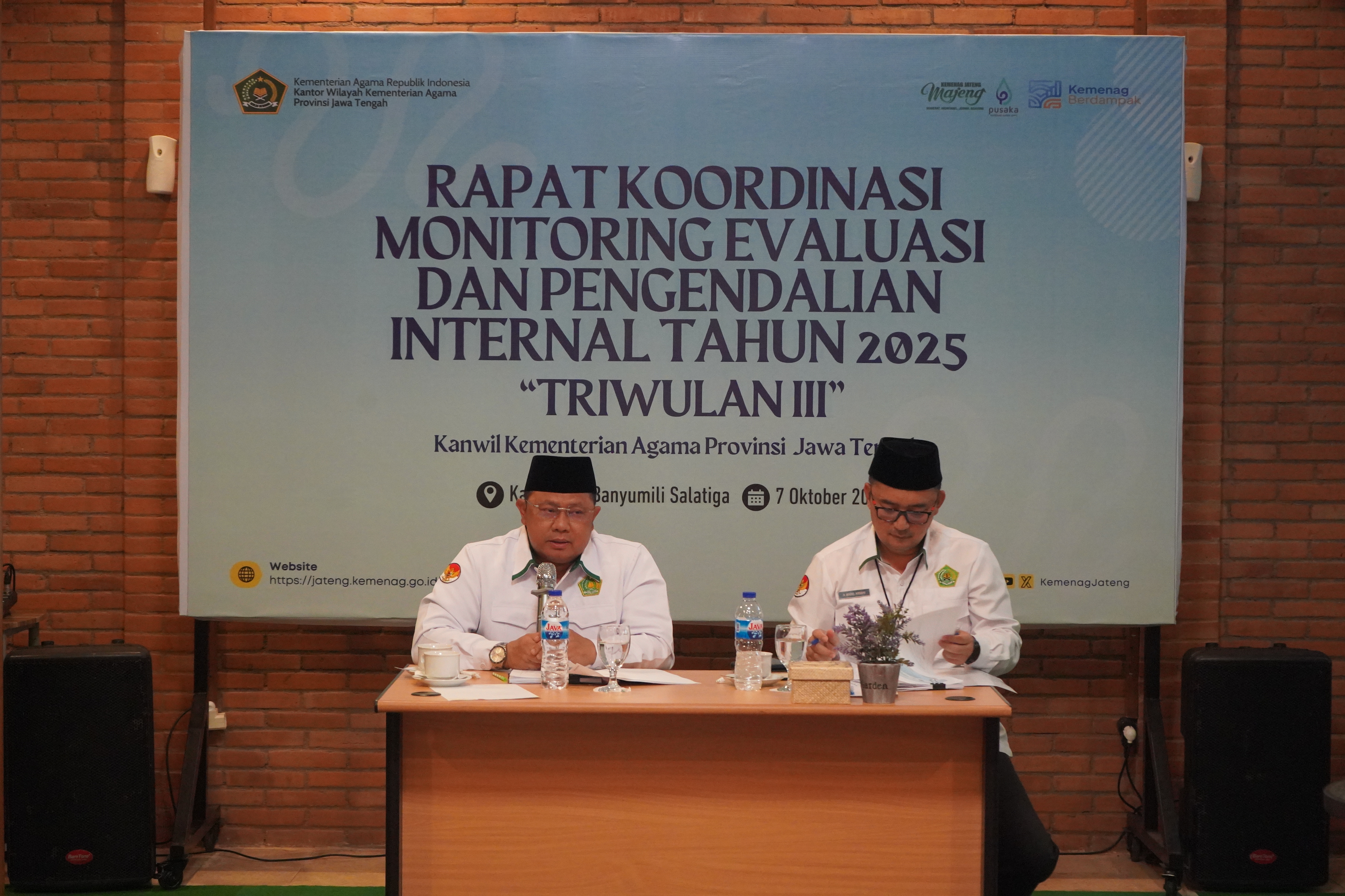 Kab. Semarang (Humas) — Kantor Wilayah Kementerian Agama Provinsi Jawa Tengah menggelar Rapat Koordinasi Monitoring, Evaluasi, dan Pengendalian Internal Triwulan III Tahun 2025, bertempat di Kampoeng Banyumili, Kabupaten Semarang, pada Selasa (7/10/2025).