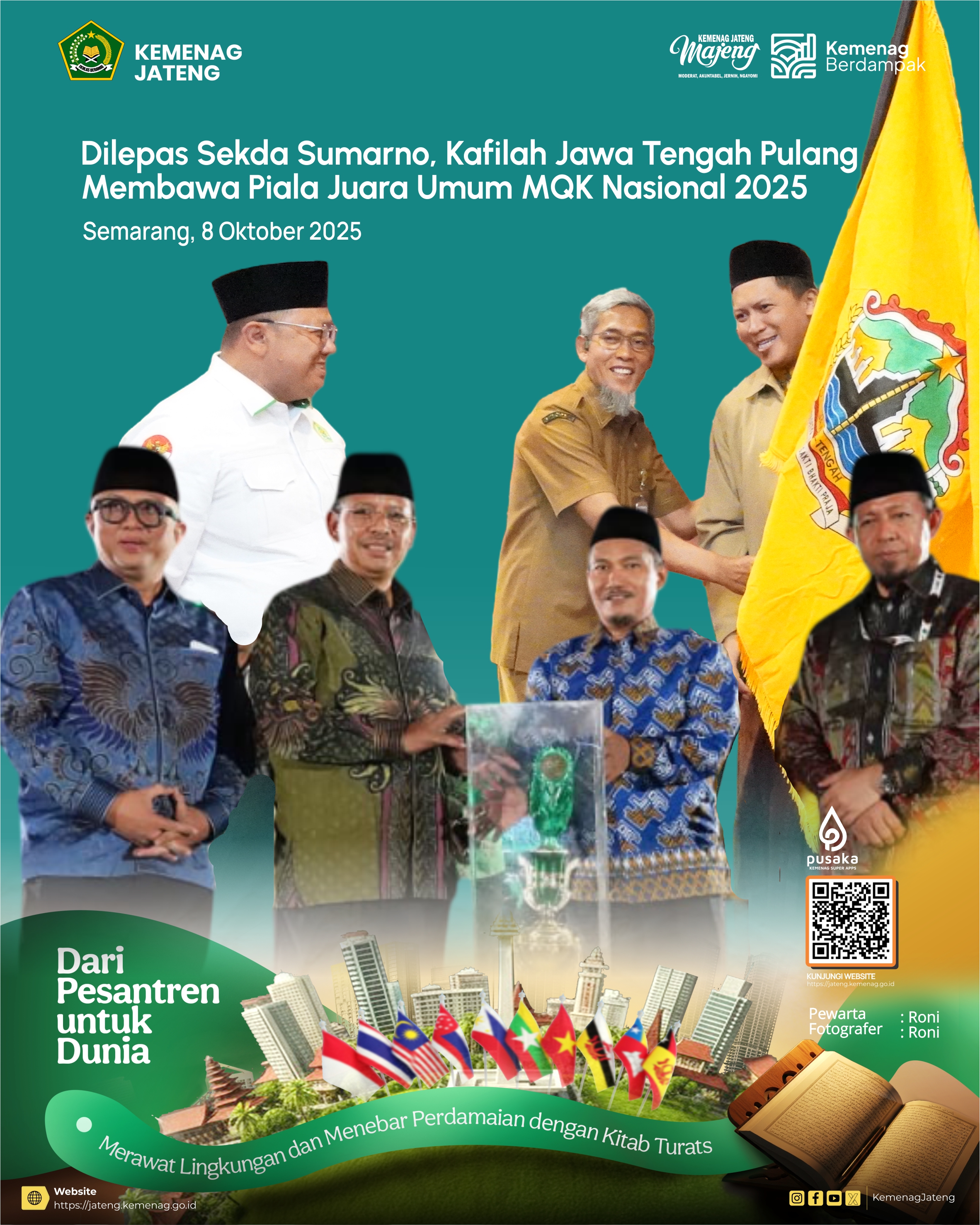 “Sinergi antara pemerintah daerah dan Kementerian Agama menjadi kunci keberhasilan ini. Dukungan moril, fasilitasi, dan semangat yang diberikan sejak awal pemberangkatan hingga kafilah kembali ke Jawa Tengah menjadi energi besar bagi para santri untuk tampil percaya diri dan membawa pulang prestasi terbaik,” lanjutnya.