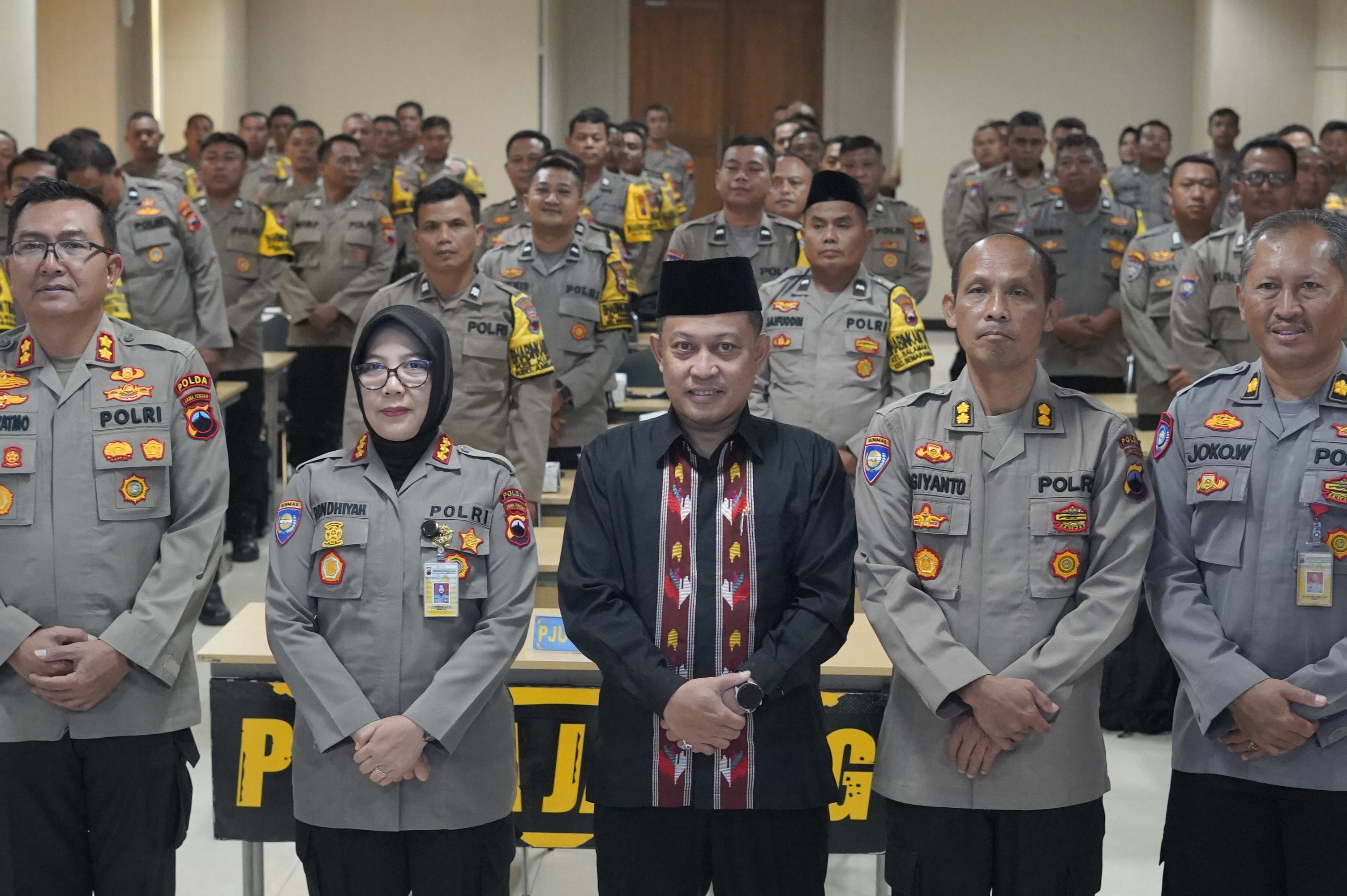 Semarang (Humas) – Baru baru ini Ditbinmas (Direktorat Pembinaan Masyarakat) Polda Jateng menggelar kegiatan Pembekalan dan Pelatihan Fungsi Binmas dan Bhabinkamtibmas sebagai Da’i Kamtibmas dan Khotib di Tempat Ibadah. Kegiatan ini diselenggarakan oleh Direktorat Pembinaan Masyarakat Polda Jawa Tengah dengan menggandeng Kantor Wilayah Kementerian Agama Jawa Tengah, pada Selasa (2/12/2025). Hadir sebagai narasumber, Ketua Tim Bimtek dan Supervisi Penyuluh Agama Islam Achmad Syalabi, mewakili Kepala Bidang Penaiszawa Imam Buchori untuk membekali kompetensi dakwah dan khutbah dikalangan Bhabinkamtibmas (Bhayangkara Pembina Keamanan dan Ketertiban Masyarakat) se-Jateng Angkatan 1.