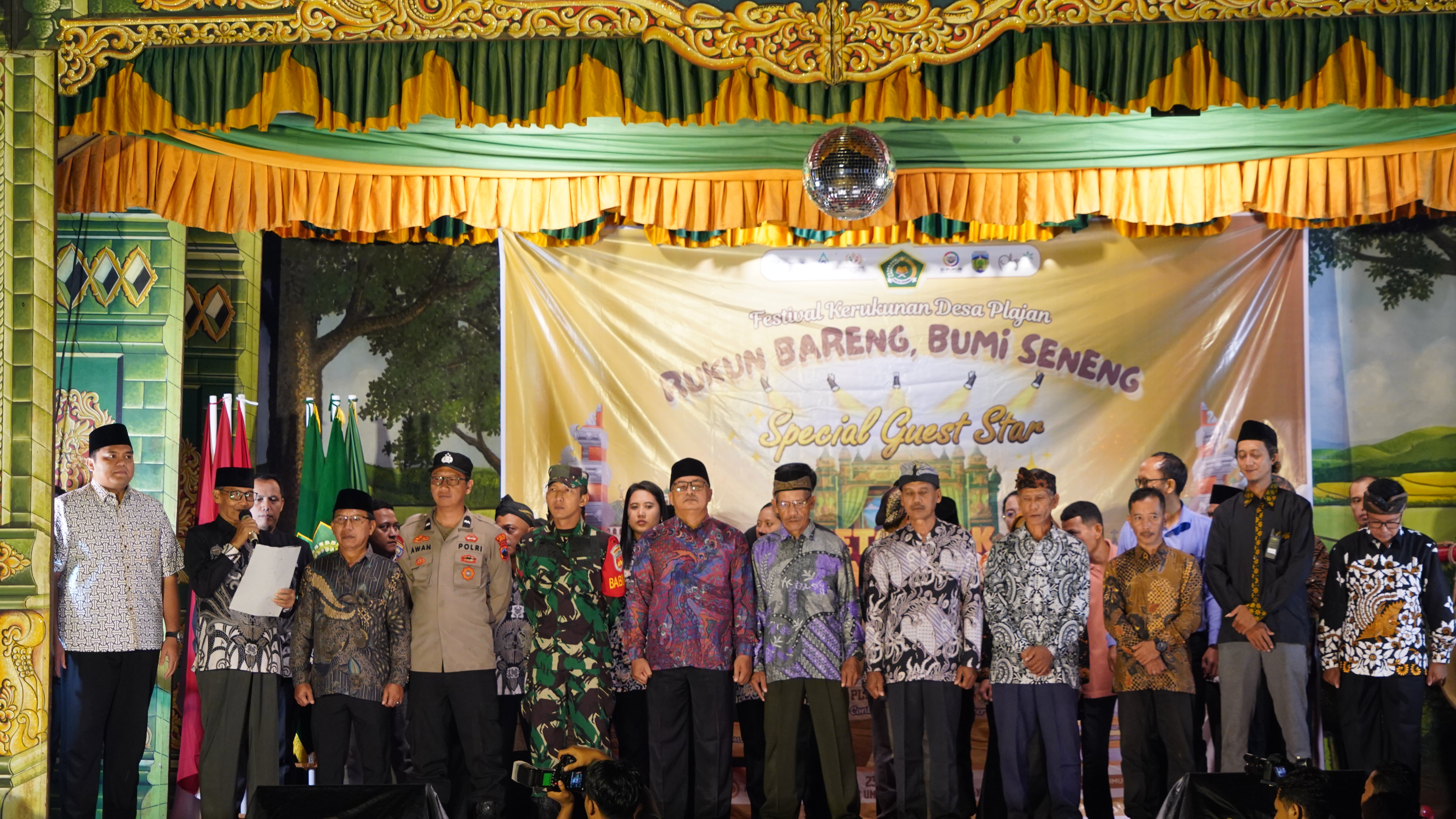Jepara (Humas) – Suasana penuh kehangatan dan semangat kebersamaan mewarnai Festival Kerukunan Desa Plajan yang bertajuk “Rukun Bareng Bumi Seneng” di Lapangan Sepak Bola Desa Plajan, Kecamatan Pakis Aji, Kabupaten Jepara, Kamis (23/10/2025).