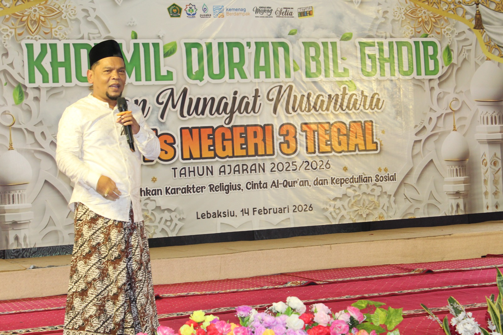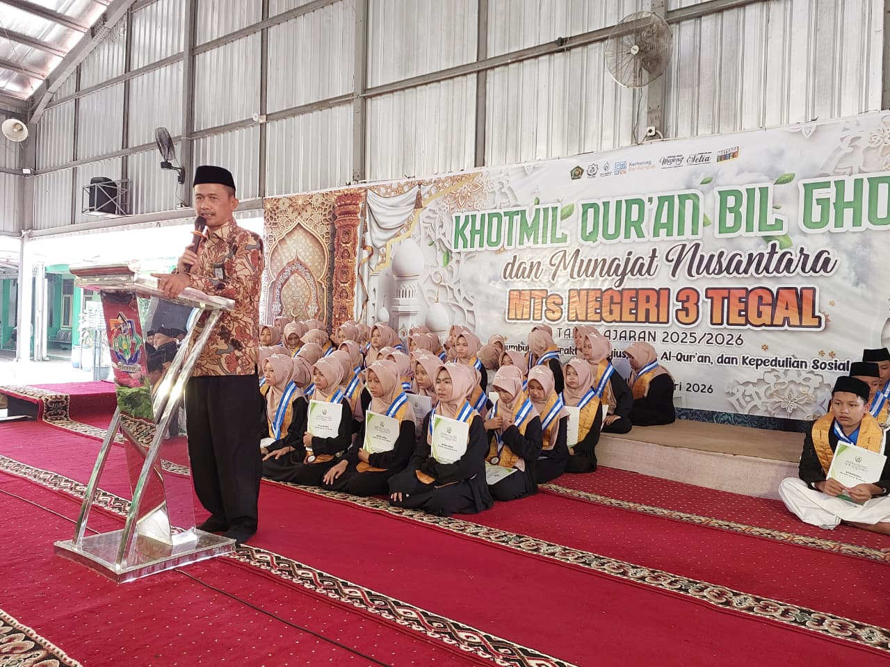 Kabupaten Tegal (Humas) — Madrasah Tsanawiyah Negeri 3 Tegal Menggelar kegiatan Khotmil Al-Qur’an dan Munajat Nusantara pada Sabtu (14/2/2026) di Indoor MTs N 3 Tegal. Kegiatan berlangsung khidmat dan penuh haru dengan dihadiri jajaran Kementerian Agama serta orang tua siswa.