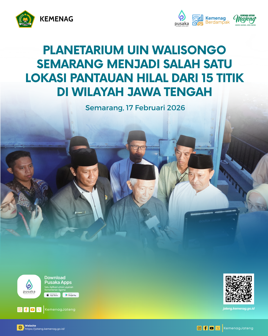 Semarang (Humas) – Kantor Wilayah Kementerian Agama Provinsi Jawa Tengah kembali menunjukkan komitmennya dalam penguatan pelayanan keagamaan di wilayah pelosok negeri. Melalui program Dai 3T (Terdepan, Terluar, dan Tertinggal), Jawa Tengah resmi memberangkatkan 60 Dai/Daiyah untuk bertugas selama bulan suci Ramadan 1447 H / 2026 M.