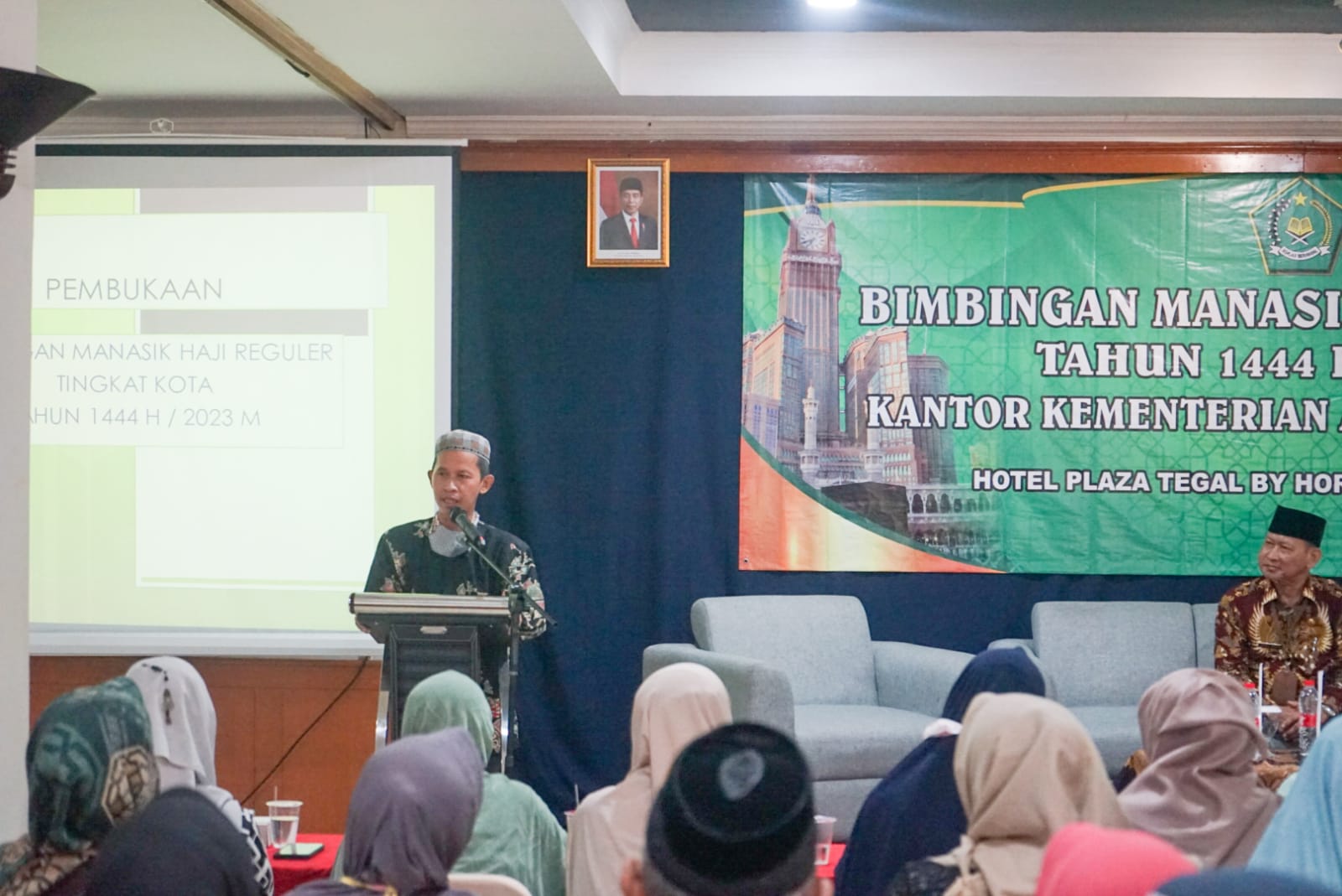 Tegal – Kementerian Agama Kota Tegal selenggarakan Kegiatan Bimbingan Manasik Haji Tingkat Kota Tegal Tahun 1444 H/2023 di Hotel Horizon Plaza (09/05). Kegiatan yang dilaksanakan selama 2 hari (9-10 Mei) ini, diikuti oleh 203 orang calon jamaah haji Kota Tegal.
